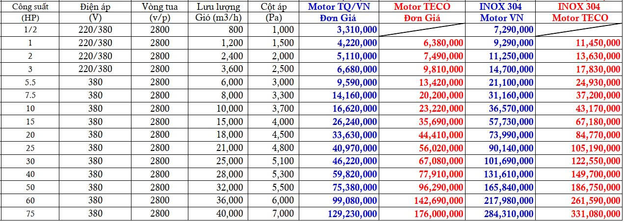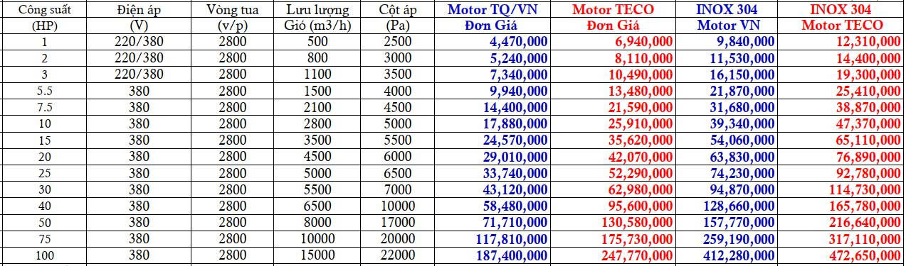 ► Báo giá quạt ly tâm cao áp