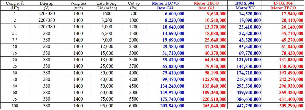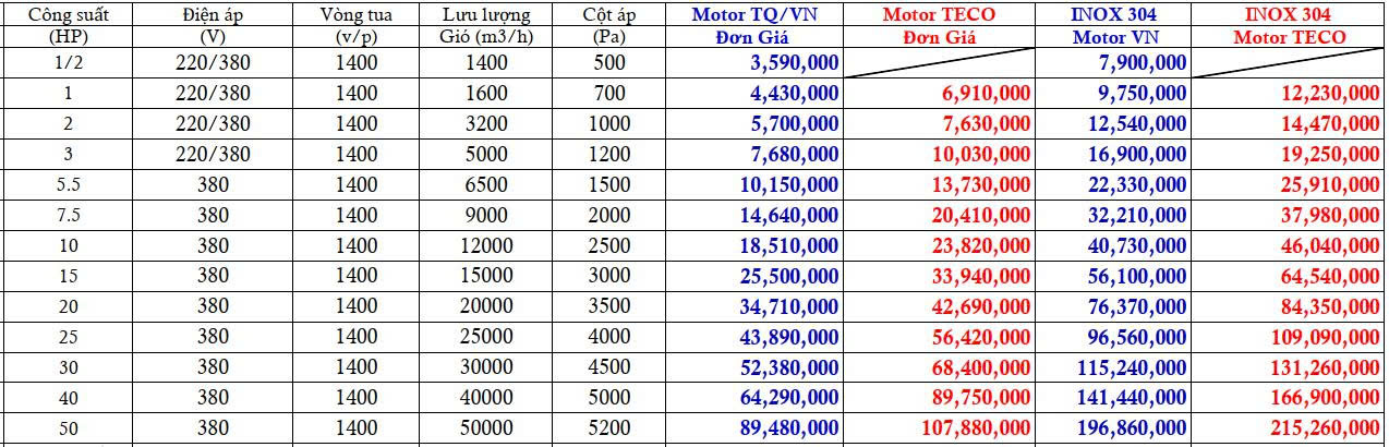 Bảng giá quạt hút ly tâm cao áp được cập nhật mới nhất