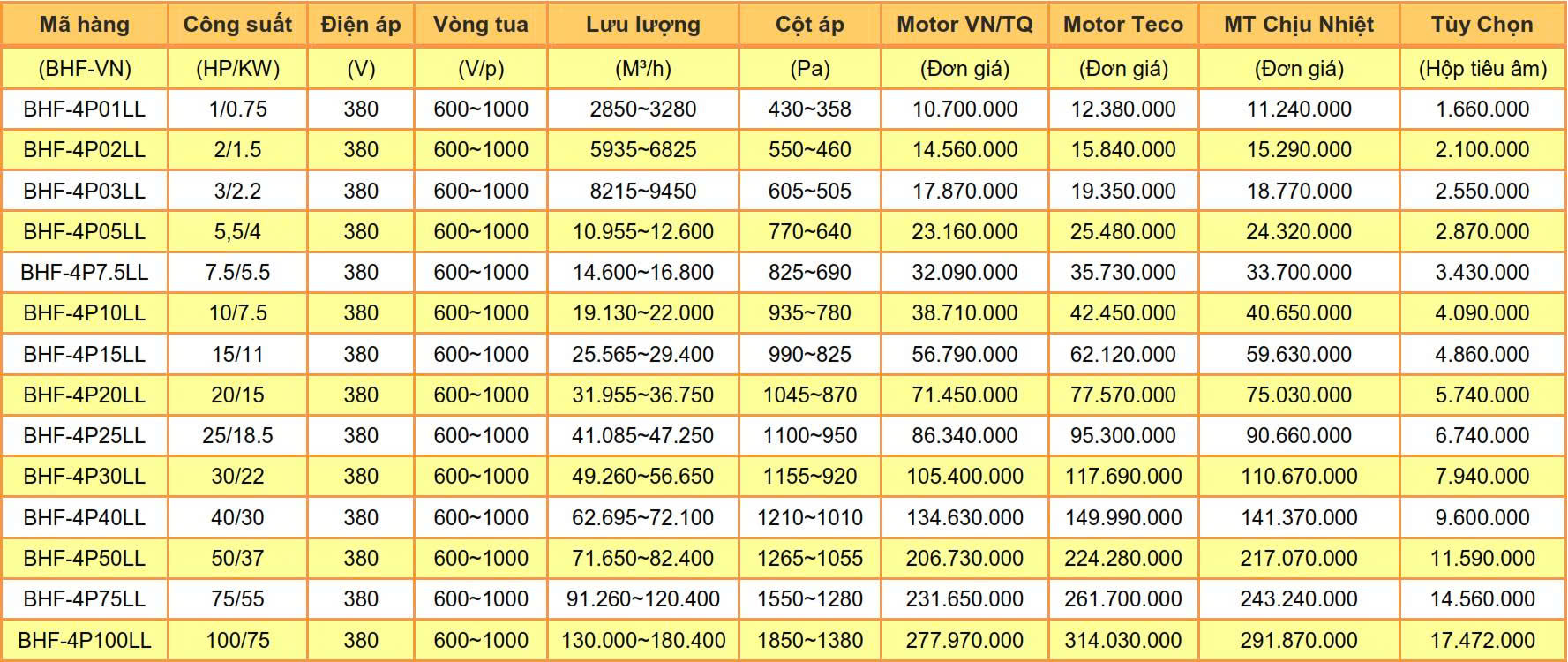 Với sự phát triển của ngành công nghiệp như hiện nay thì quạt hút ly tâm là một trong những mặt hàng thiết yếu được sử dụng rộng rãi trong các ngành công nghiệp sản xuất, chế biến... Sự đa dạng về chủng loại và nhiều công suất khác nhau nên sẽ có nhiều lựa chọn để khách hàng có thể sử dụng phù hợp với tiêu chí đặt ra. Quạt ly tâm công nghiệp được phân biệt làm 2 loại, đó là trực tiếp và gián tiếp, gồm có các dòng: thấp áp, trung áp, cao áp, siêu cao áp và lưu lượng. Sau đây, Công ty BHF Việt Nam sẽ cập nhật báo giá quạt ly tâm mới nhất 2019 để khách hàng dễ dàng lựa chọn: