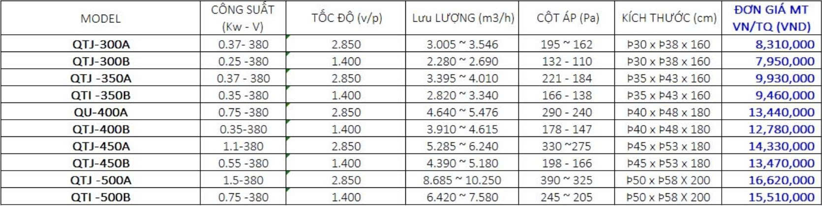 Sau đây xin gửi đến Quý khách hàng bảng báo giá sản phẩm và thông số kỹ thuật của quạt đuổi gió tầng hầm kiểu Jetfan do Công ty Quạt BHF chế tạo, sản xuất và lắp ráp tại Việt Nam.