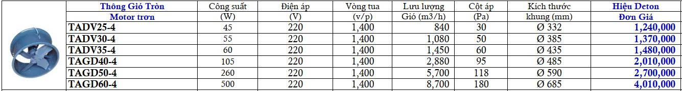 ► Bảng giá chỉ áp dụng cho quạt trơn