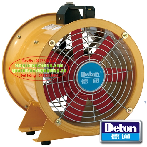 Quạt thông gió xách tay Deton được thiết kế tiện lợi, có quai xách và công tắc ngay trên quạt, dễ dàng di chuyển đi mọi nơi hoặc có thể lắp cố định tại một điểm. Cánh quạt và họng cấp gió được thiết kế tối ưu cho lưu lượng gió lớn và áp suất cao thích hợp sử dụng cấp gió tươi đường ống hoặc hút khí thải, khói bụi, khí nóng trong các khu vực thi công trong phòng kín, tầng hầm, nhà máy, xưởng sản xuất, hay nhà hàng khách sạn...Sản phẩm có thể kết nối với ống gió mềm simili co giãn, áp suất cao trên khoảng cách xa rất hiệu quả.